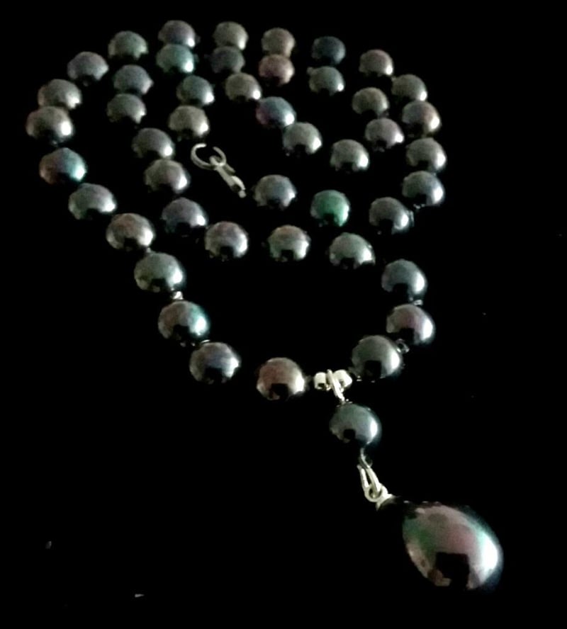 TAHITAN BLACK 8MM SEA SHELL PEARL NECKLACE WITH 16MM PENDANT