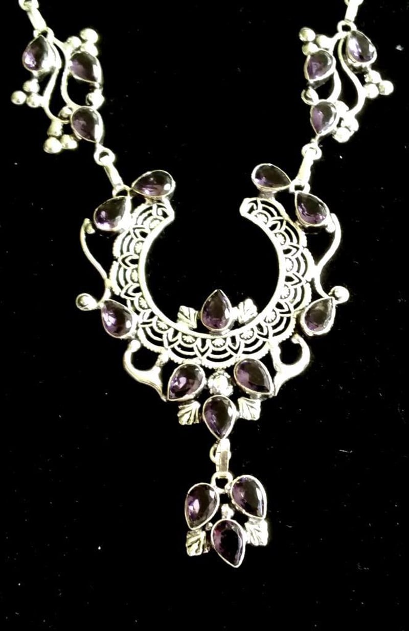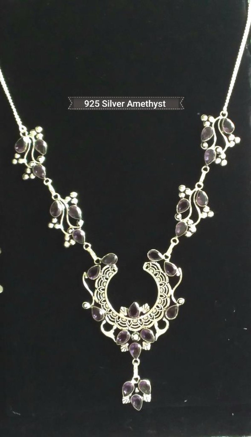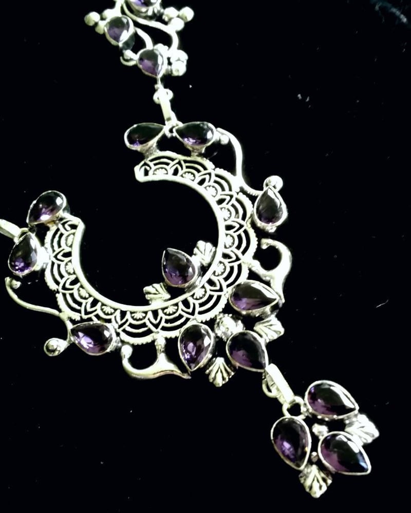 925 SILVER ETHNIC STYLE NECKLACE WITH AMETHYST CRYSTALS
