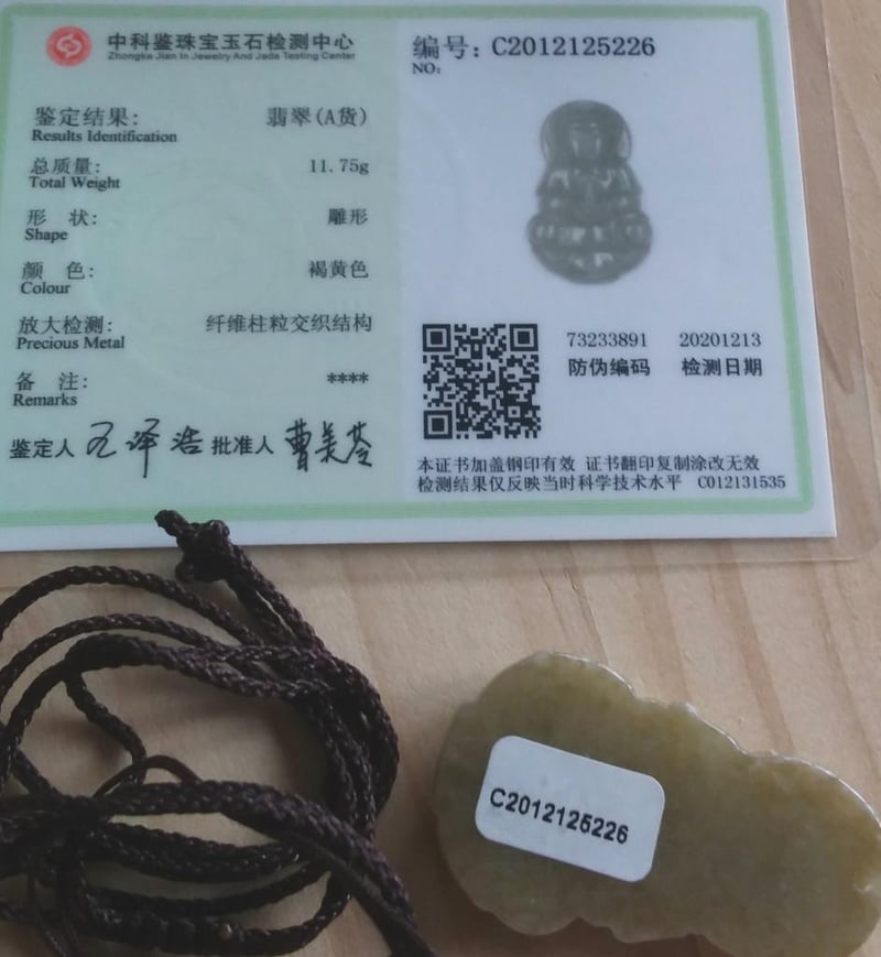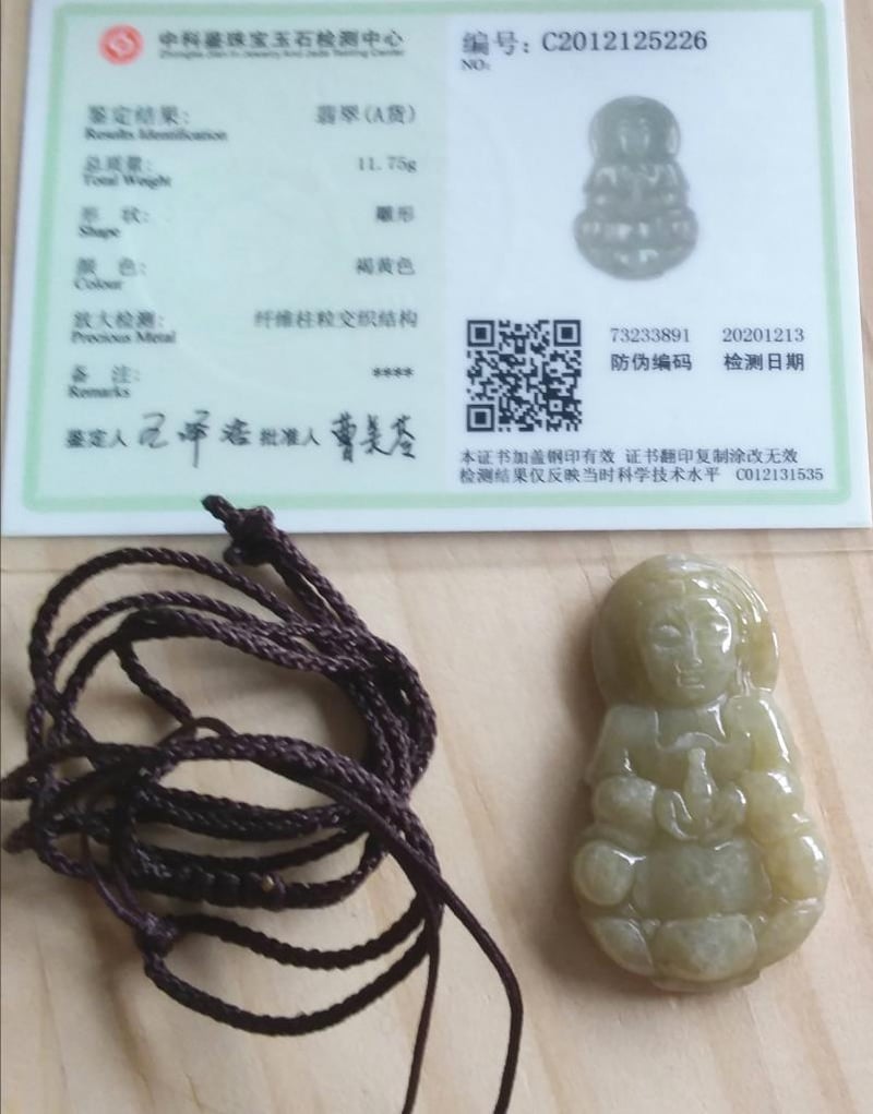 CERTIFIED CHINESE GREEN JADE PENDANT NECKLACE Condition: Good - Refer Images 0163143+16