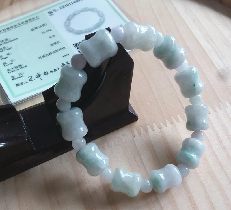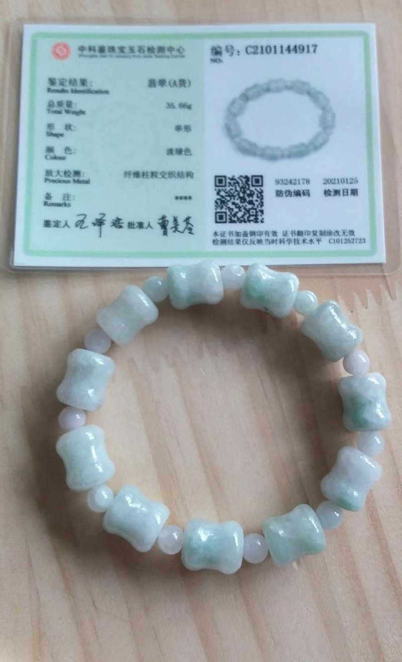 CERTIFIED CHINESE ICE GREEN JADE UNISEX STRETCH BRACELET
