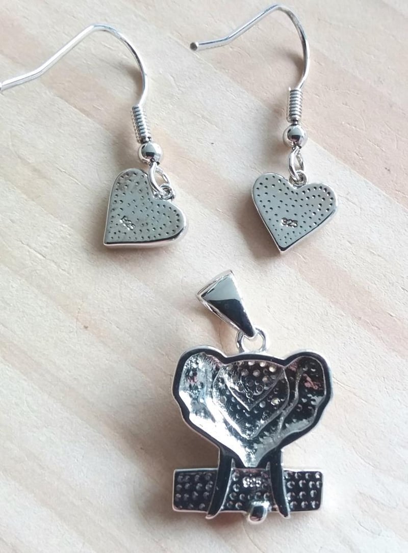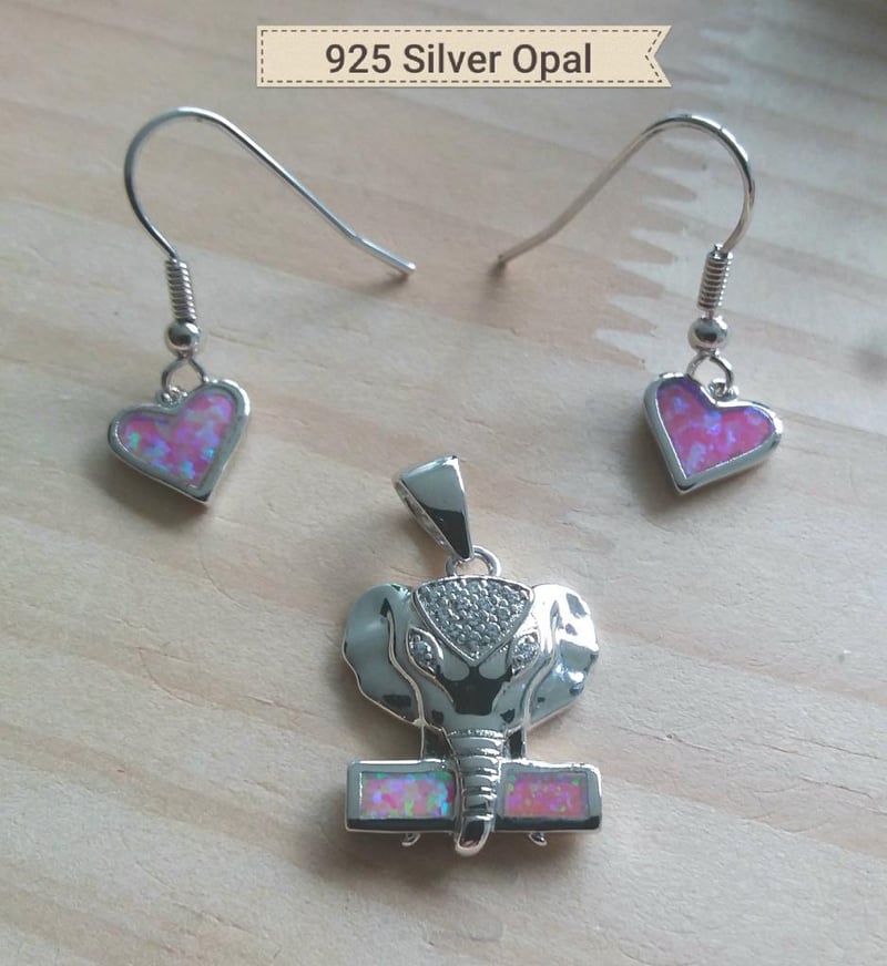 925 SILVER PINK LAB CREATED OPAL EARRINGS AND PENDANT Condition: Good - Refer Images 0163143+21
