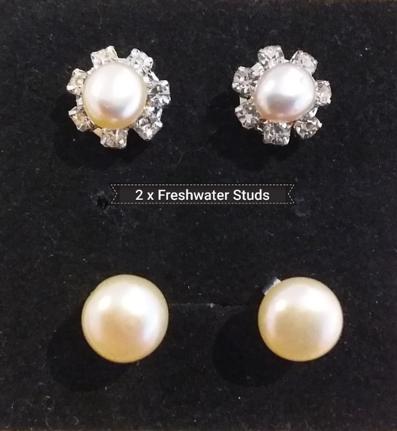 2 PAIRS OF 925 SILVER FRESHWATER PEARL STUD EARRINGS
