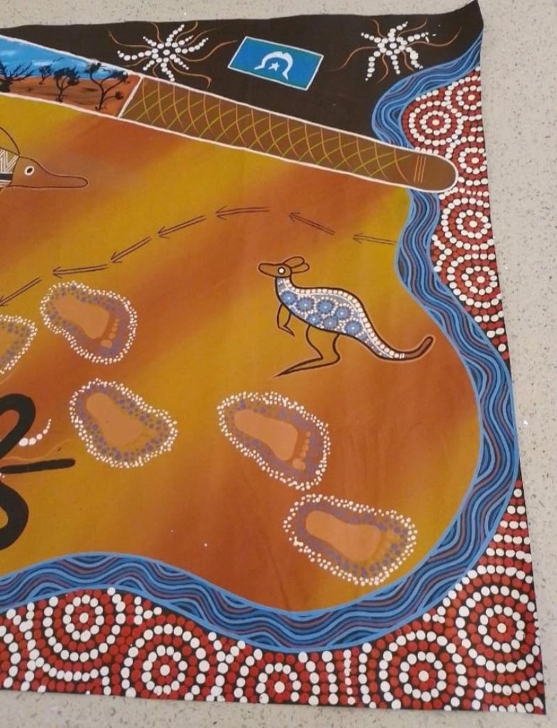 Has Aboriginal Flag And Torres Strait Islander Flag. Hand Painted Dot Painting By The Famous Matthew Stewart.