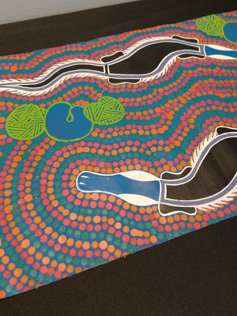 Aboriginal Hand Painted Dot Painting Of Goanna Dreaming Hand Painted On Canvas By Matthew Stewart
