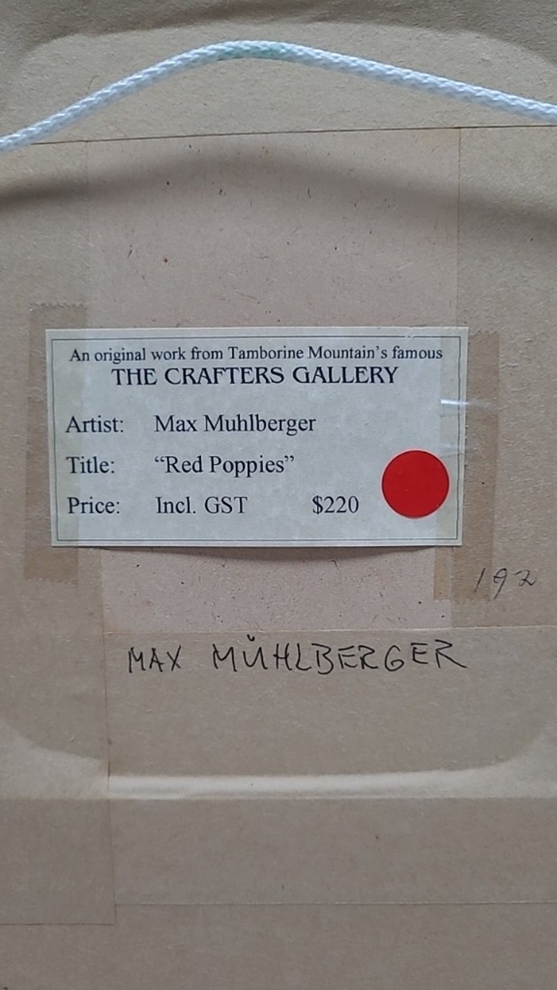 MAX MUHLBERGEROriginal Oil Painting On BoardTitle: Red PoppiesImage Size: 15cm x 13cmItem Size: Height: 34cm, Width: 31cm, Depth: 3cm, Weight: 0.7KgSignature Details: Signed Lower LeftCondition: Good - Refer To Images587905+9