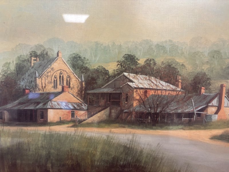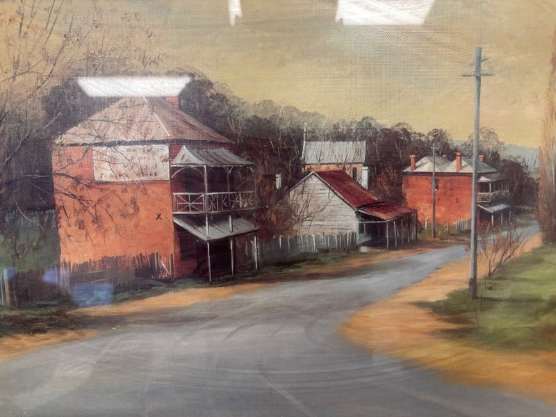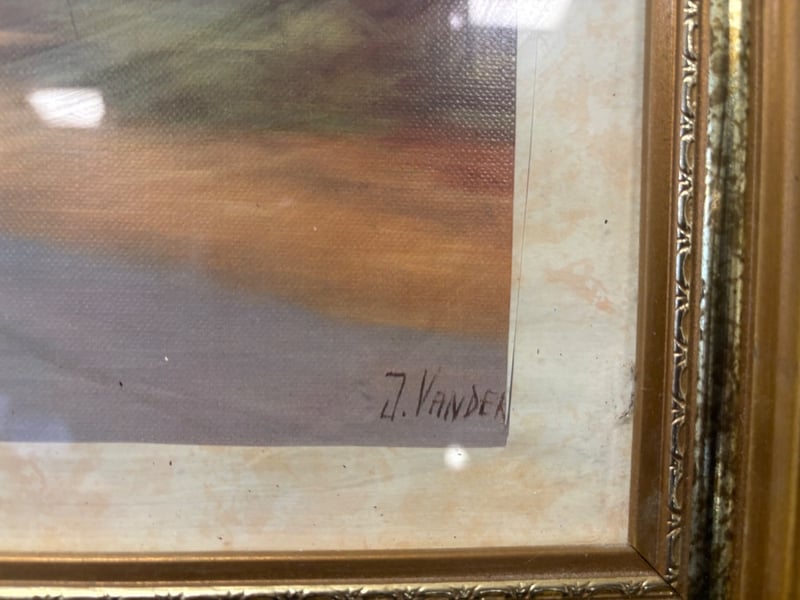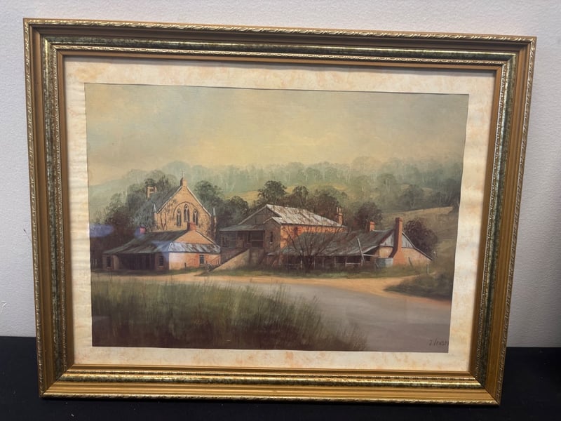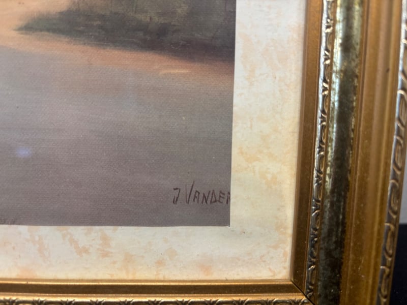 JOHN VANDER AUSTRALIAN TOWNSCAPE OIL PAINTING, GOLD GILT FRAME, SIGNED