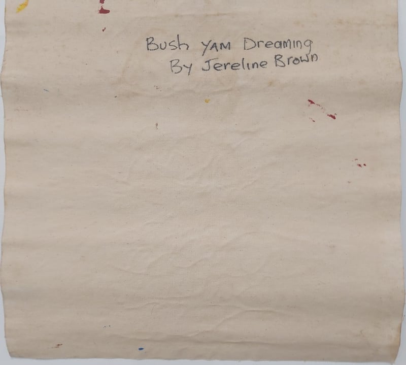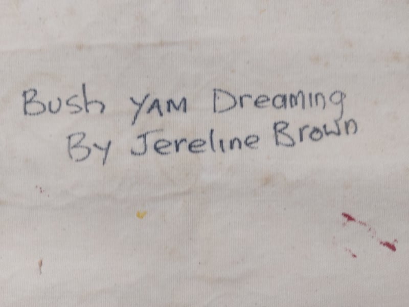 JERELINE BROWNOriginal Acrylic On CanvasTitle: Bush Yam DreamingItem Size: Height: 38.5cm, Width: 38cm, Depth: 1cm, Weight: 1KgSignature Details: UnsignedCondition: Good - Refer To Images587950+4