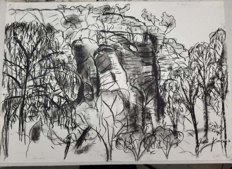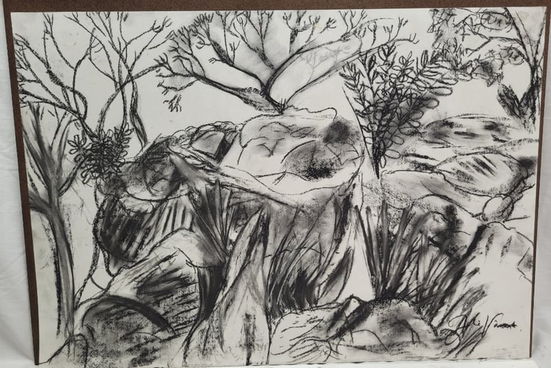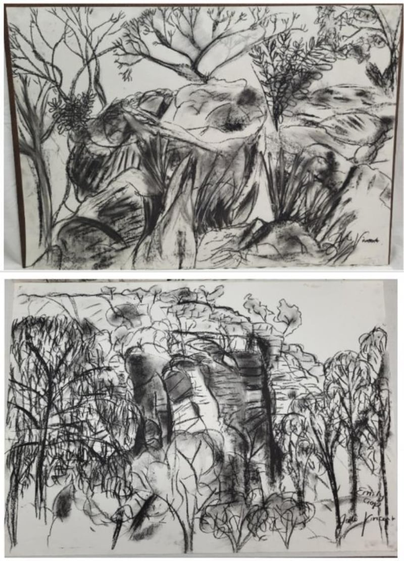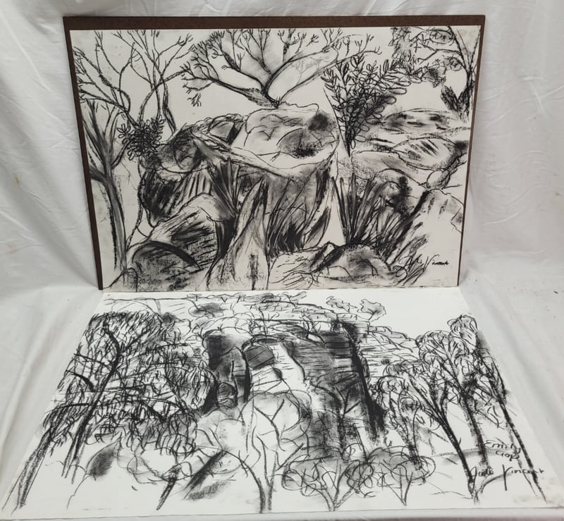 JULIE VINCENT Original Charcoal Drawings On Paper Title: Telegraph StationĀ (Top), Emily Gap (Bottom) Image Size: 42cm x 59cm Signature Details: Signed Lower Right Condition: Good - Refer To Images 587963+8