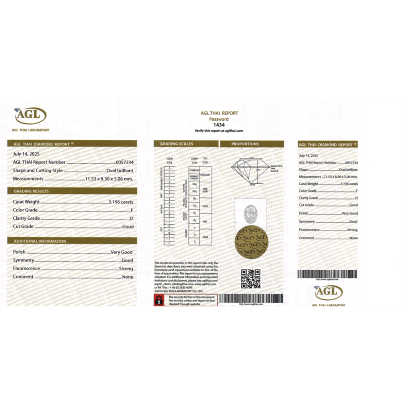 Oval Brilliant Cut, F Colour, I2 Clarity, Loose, Unset. Stone Comes Sealed With Agl Report: 0057234.