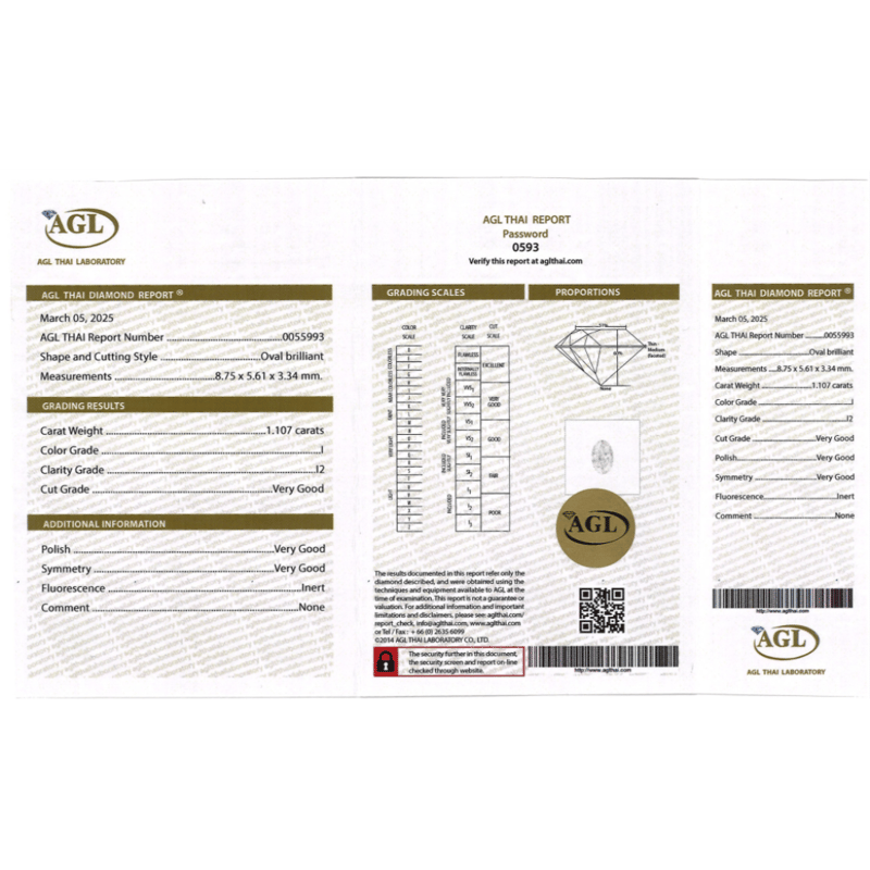 Oval Brilliant Cut, I Colour, I2 Clarity, Loose, Unset. Stone Comes Sealed With Agl Report: 0055993.