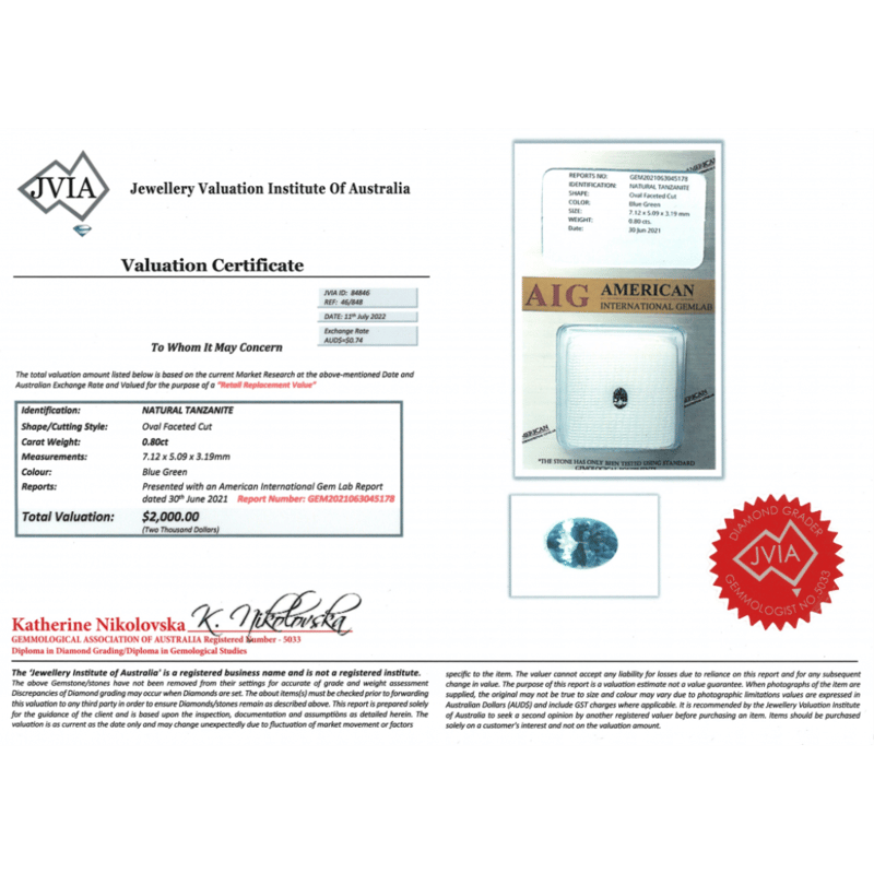 0.80CT CERTIFIED, NATURAL TANZANITE