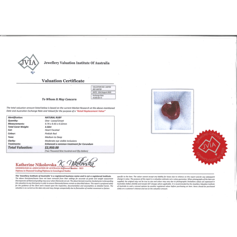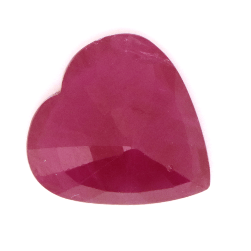 Heart Faceted Cut, Pinkish-Red, Moderate Eye Visible Inclusions, Loose, Unset.