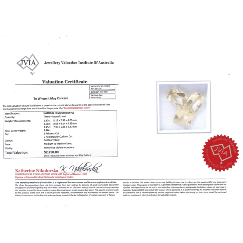 4.90CT TSW X 3, NATURAL BERYL HELIODOR