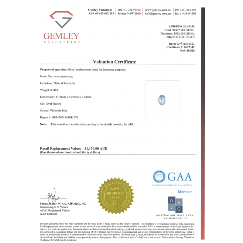 0.78CT CERTIFIED, NATURAL TANZANITE