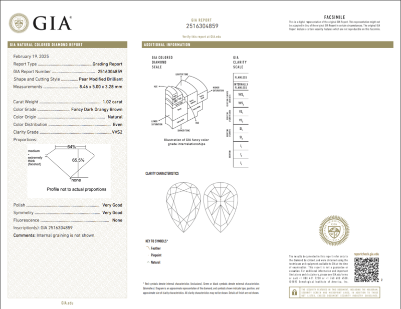 PEAR 1.02CT FANCY BROWN YELLOW NATURAL DIAMOND