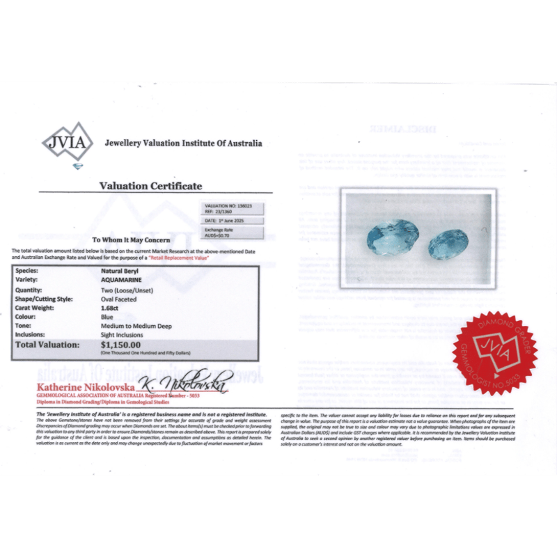 1.68CT TSW X 2, NATURAL BERYL AQUAMARINES