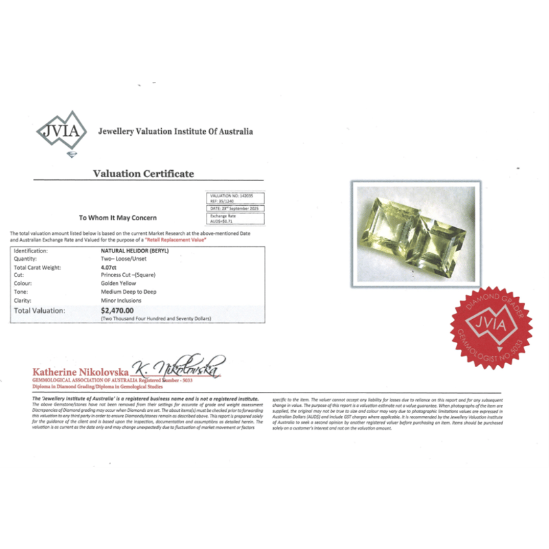 4.07CT TSW X 2, NATURAL BERYL HELIODOR