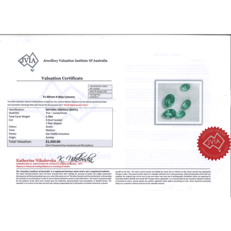 1.79CT TSW X 5, NATURAL ZAMBIAN EMERALDS