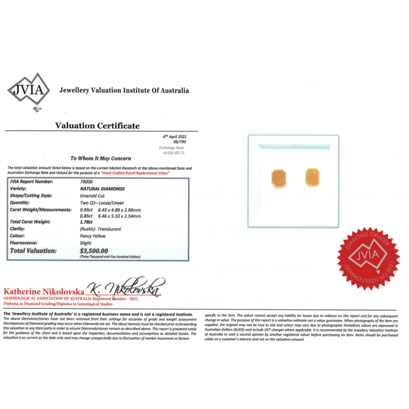 1.78CT TDW X 2, NATURAL FANCY YELLOW DIAMONDS