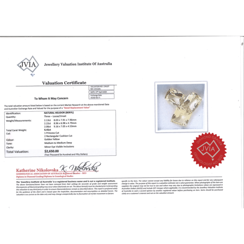 6.41CT TSW X 3, NATURAL BERYL HELIODOR