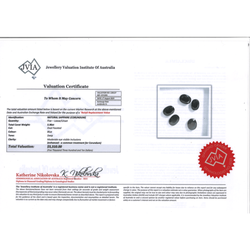 5.90CT TSW X 5, NATURAL BLUE CORUNDUM SAPPHIRES