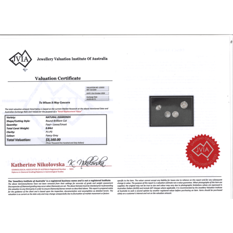 Round Brilliant Cut, Fancy Grey Colour, P1-P3 Clarity, Loose, Unset.