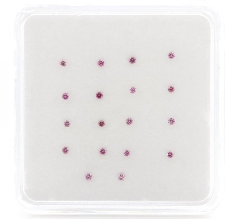 18 X LOOSE FANCY/ FANCY INTENSE PINK/PURPLISH PINK AUSTRALIAN ARGYLE DIAMONDS Carat Weight : 18 = Tdw 0.137CtMeasurements: 1.16 - 1.20MmShape: Round BrilliantClarity: Si AverageColour: Fp/FippFluorescence: Medium BluePhotochromism Seen Characteristic Of Pink Diamonds From The Argyle Region.Supplied With Delta Diamond Laboratory Certificate Of Origin Report # 8188953 Dated 1St October 2021.A Copy Is Attached To This Document. Condition: Good - Refer Images 0233662+7