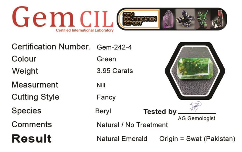 3.95 CARATS NATURAL VIVID GREEN EMERALD 3.95 Carats Natural Vivid Green EmeraldStone = Natural EmeraldWeight = 3.95 Carats Colour = Green Cut = Fancy Lustre = Excellent Treatment = No Oil (Natural)Origin = Swat (Pakistan) Condition: Good - Refer Images 0488573+4