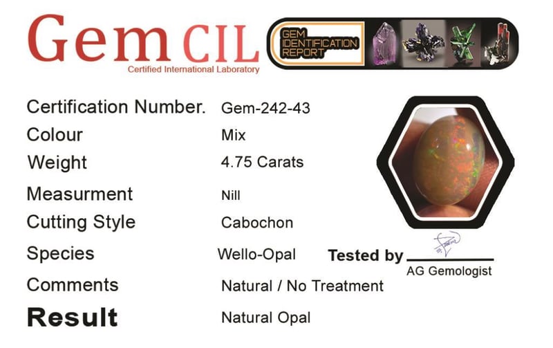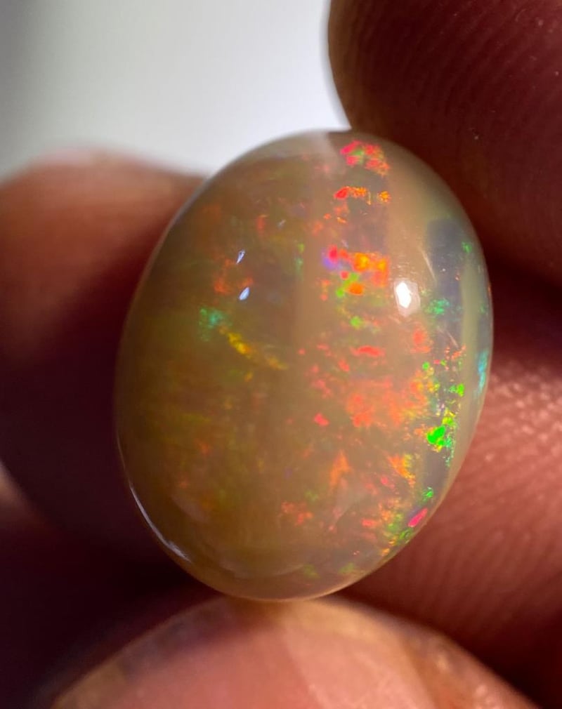 4.75 CARATS NATURAL FIERY OPAL 4.75 Carats Natural Fiery OpalStone = Natural OpalWeight = 4.75 Carats Cut = Fancy Colour = Play Of Various ColoursCut = Cabochon Treatment = Natural, No TreatmentNote = Picture Taken Under Light Condition: Good - Refer Images 0488573+43