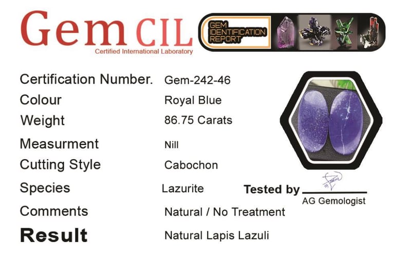 86.75 CARATS NATURAL ROYAL BLUE LAPIS LAZULI 86.75 Carats Natural Royal Blue Lapis Lazuli Stone = Natural Royal Blue Lapis LazuliWeight = 86.75 CaratsTreatment = Natural (Not Dyed) Cut = Cabochon Note = Gem Cil, Certified, Condition: Good - Refer Images 0488573+46