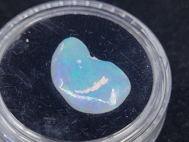2.95CT COOBER PEDY OPALCrystal Opel , Bright Blues , Greens Popping Out With Pattern Free Form ShapeDimensions: Height: 15.00mm, Width: 9.00mm, Depth: 3.00mmCondition: Good - Refer To Images582954+5