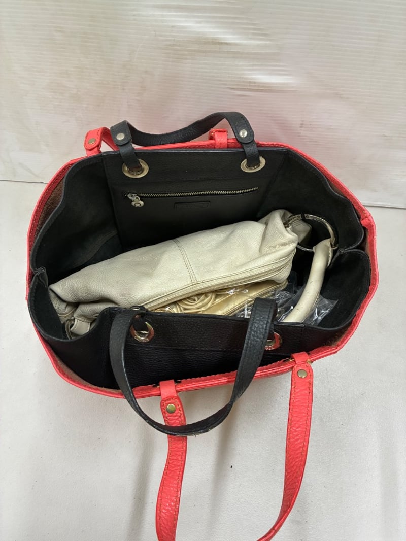 NOTE: PINK BAG HAS BROKEN HANDLE