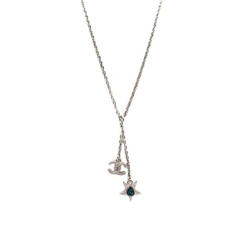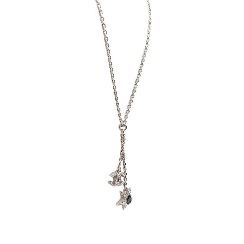 CHANEL CC LOGO & STAR CRYSTAL & FAUX‑PEARL NECKLACE