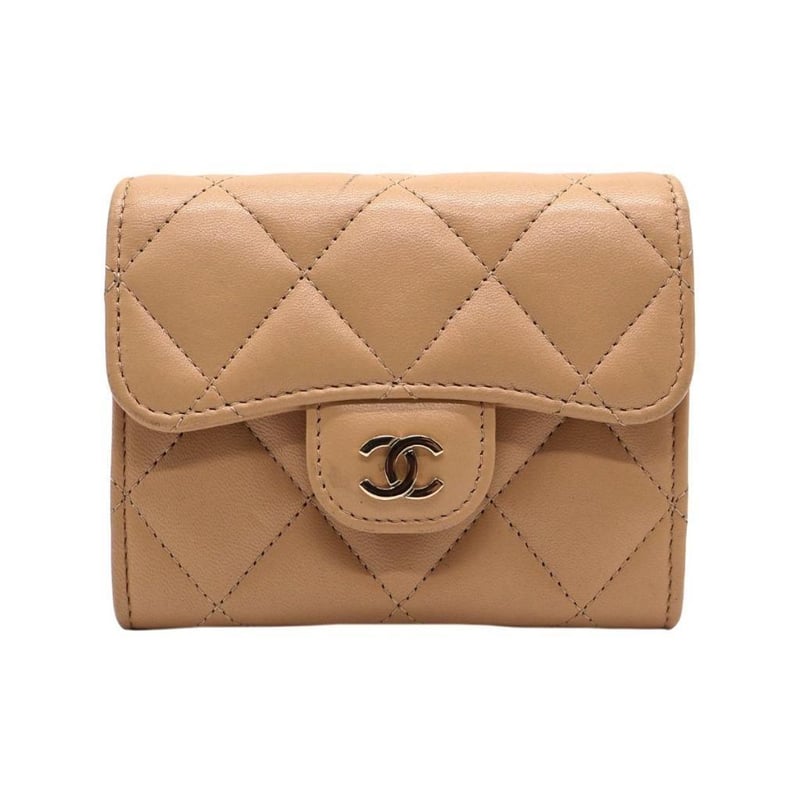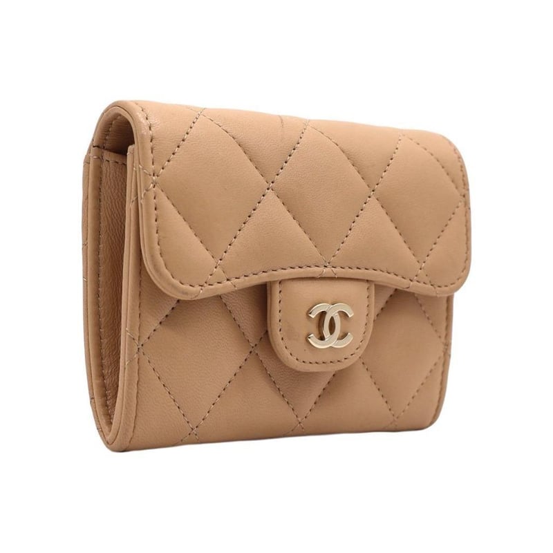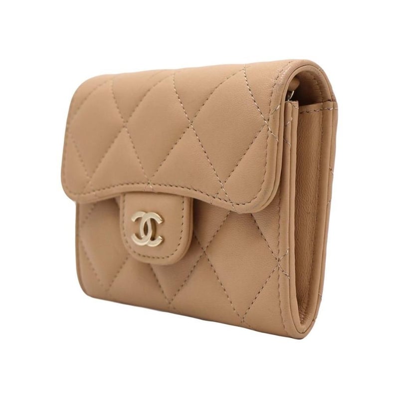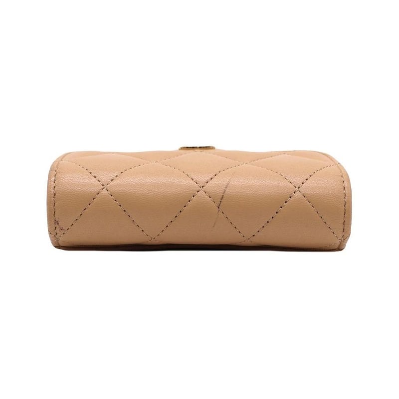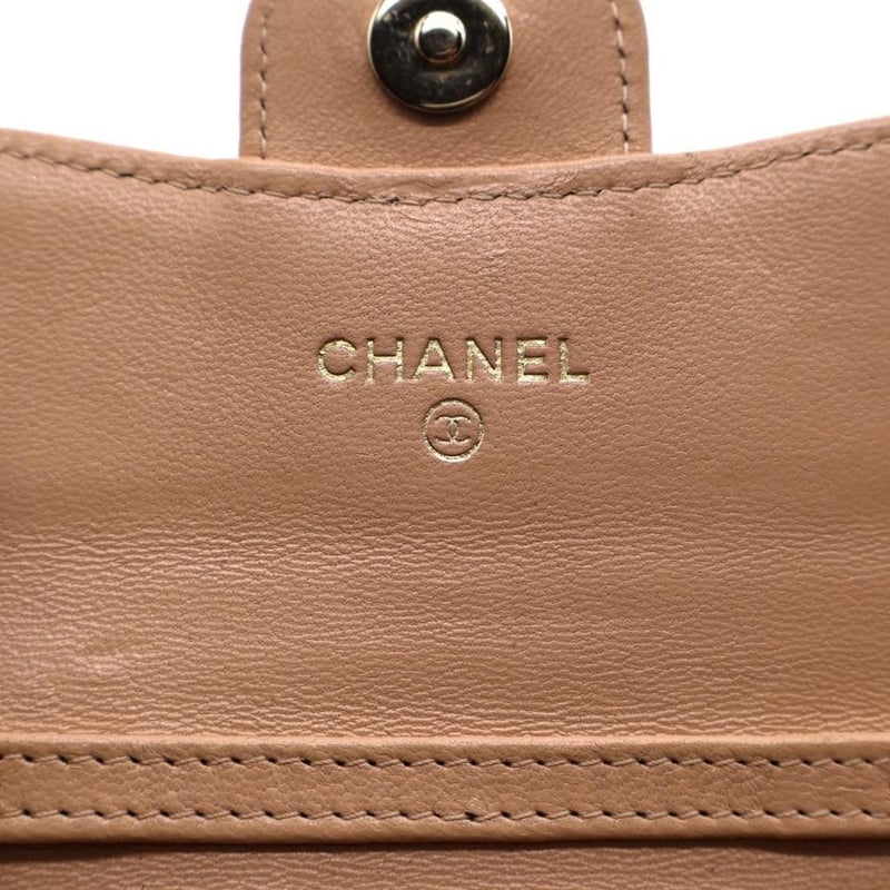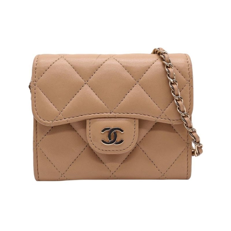 CHANEL BEIGE CARD HOLDER ON CHAIN