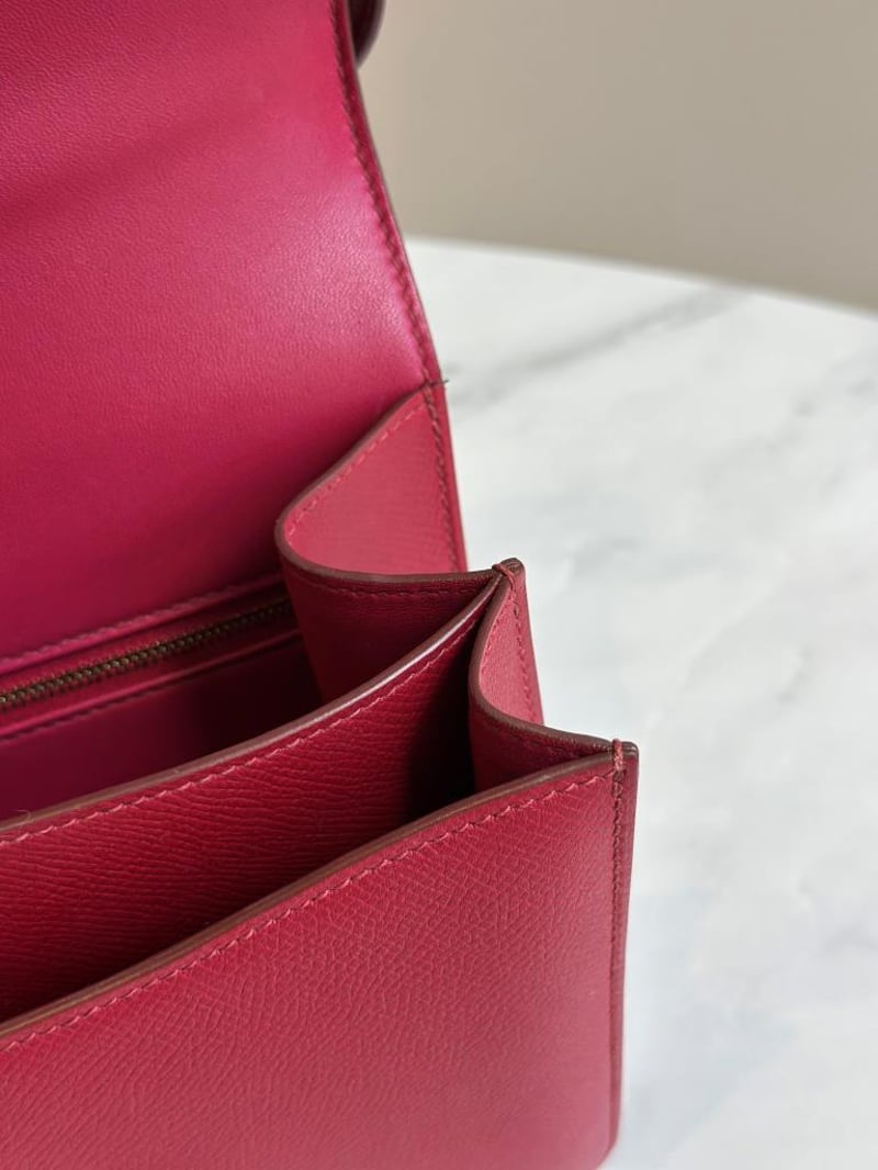HERMES RASPBERRY PINK EPSOM CONSTANCE 24 WITH GHWMinor Hairlines On Hardware, Few Nail Scratches And Scuffs On The Leather Inside And Outside Overall In 98% ConditionInclusions: Dust Bag And Proof Of AuthenticitySize: 24W x 20H x 6D cmCondition: Good - Refer To Images584562+2