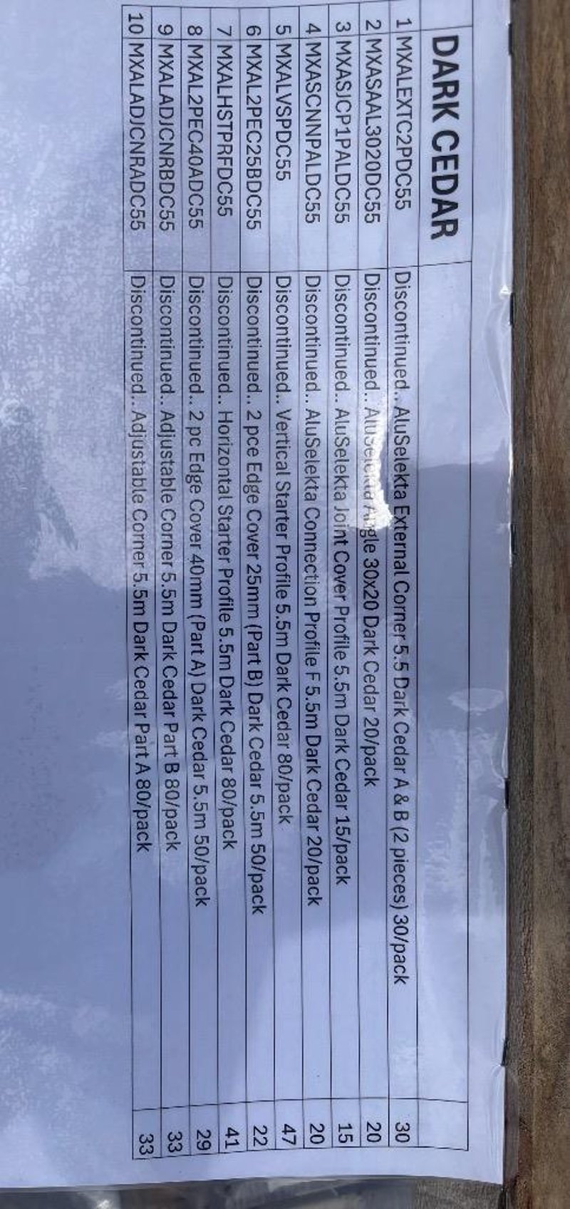 RRP $87.43 - $281.34, AluSelekta External Corner 5.5 Dark Cedar, AluSelekta Angle 30x20 Dark Cedar 20/Pack AluSelekta Joint Cover Profiles 5.5m Dark Cedar 15/Pack Model No. MXALEXTC2PDC55, MXASAAL3020DC55, MXASJCP1PALDC55, MXALVSPDC55, MXAL2PEC25BDC55, MXALHSTRFDC55 Modinex aluminium solutions are designed to deliver architectural consistency, longevity, and modern appeal. Offering a complete suite of profiles, including cladding panels, fixed and clip-on battens, and screening systems, our aluminium range supports cohesive interior and exterior applications. Whether you’re designing a façade, soffit, wall lining, or privacy screen, our non-combustible aluminium profiles provide both safety and style. They are UV-stable, corrosion-resistant, and tested to perform in even the harshest Australian conditions. Available in a range of realistic timber-look finishes and solid colours, our aluminium cladding offers the character of natural materials with the durability of metal. From large-scale commercial projects to residential builds and public works, our aluminium range delivers refined detailing, fast installation, and compliance peace of mind. Note: Sold As Lot