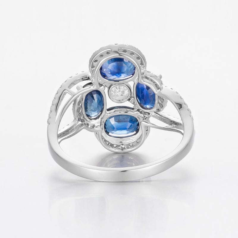 14CT WHITE GOLD AUSTRALIAN SAPPHIRE AND DIAMOND STATEMENT RING Featuring Centre, 4 Oval Mixed Cut, Deep Royal Blue Australian Sapphires (2.85Ct Tsw, Heavily Included), Claw Set, With 75 Round Brilliant Cut Diamonds (0.53Ct Tdw, F-G Colour, Vs1-Vs2 Clarity), Bead Set. Ring Size O. Valuations Provided by an Independent Third-Party Professional Not Directly Associated With Lloyds Auctions at AUD $18000This valuation has been conducted by an independent third-party professional. The valuation amount is an assessment by the issuing valuer and does not reflect the auction value of the item. Any inquiries regarding the valuation should be directed to the issuing valuer (refer to contact details on the certificate), as Lloyds Auctions has no affiliation or influence over the valuation, the valuer, or the stated amount. Condition: Good - Refer Images 0582907+2057