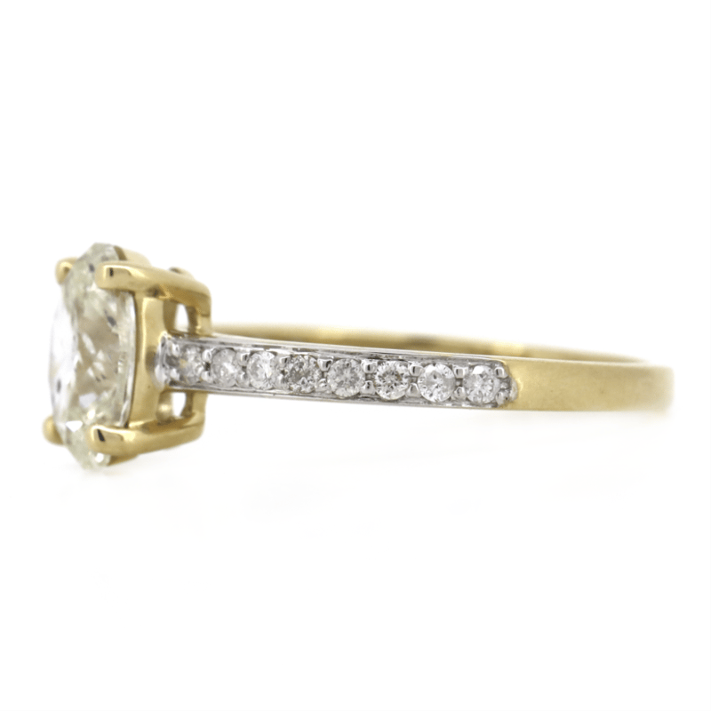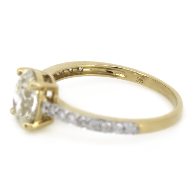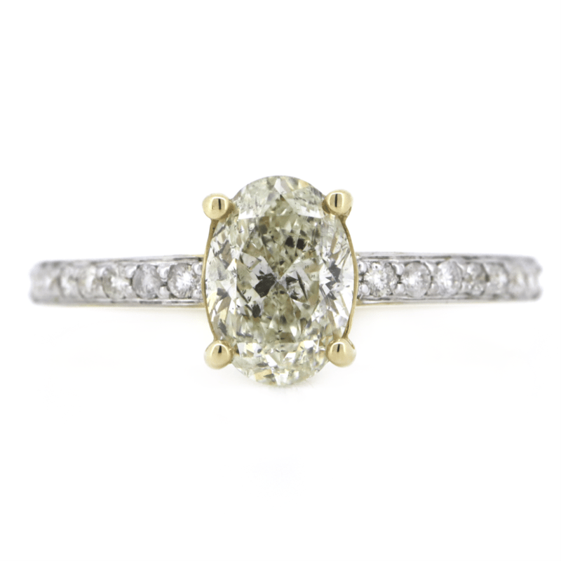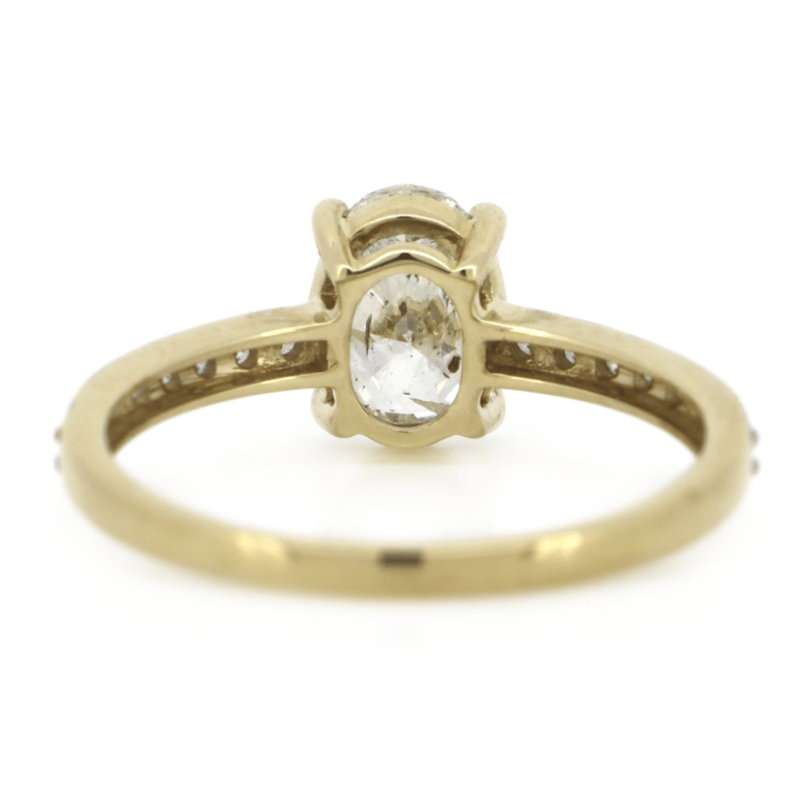 The Centre Features, One Oval Cut, Diamond (1.01Ct, L Colour, Si2 Clarity), 4 Claw Set. Decorating The Band Are, 16 Round Brilliant Cut, Diamonds (0.15Ct Tdw, J-K Colour, Si1-I1 Clarity), Bead Set In White Gold. Ring Size K 1/2.