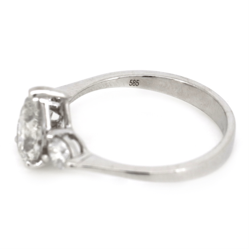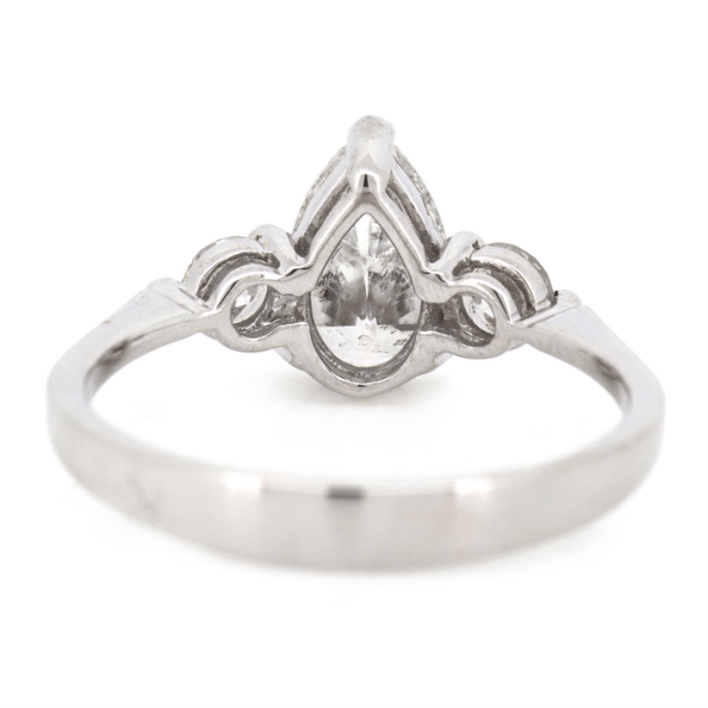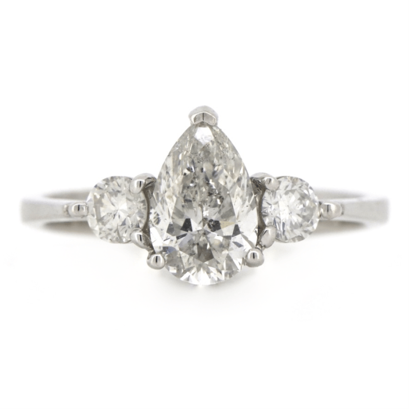 The Centre Features, One Pear Cut, Diamond (1.01Ct, I-J Colour, Si2 Clarity), V Prong/Claw Set. Flanking The Centre Are, 2 Round Brilliant Cut, Diamonds (0.26Ct Tdw, H-J Colour, Si2-I1 Clarity), Claw Set. Ring Size K.