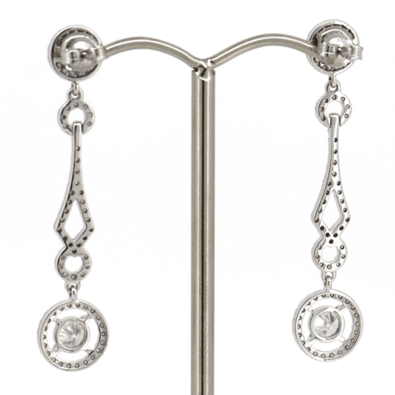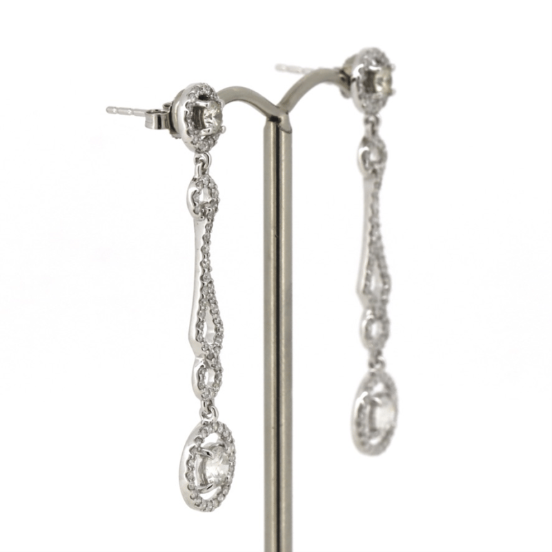 14K WHITE GOLD AND DIAMOND, HALO DROP EARRINGS.