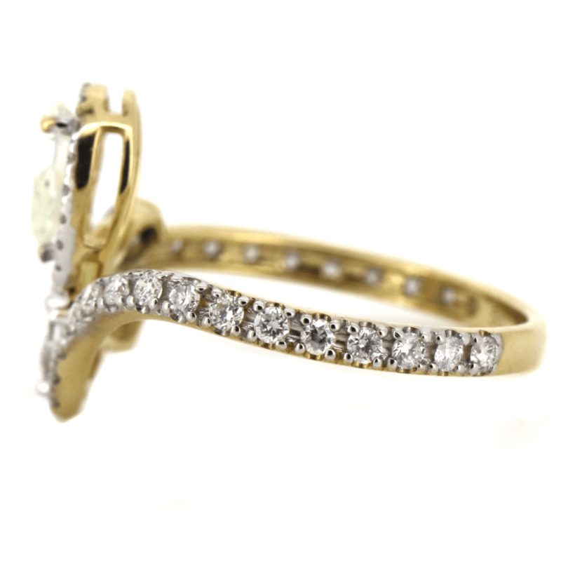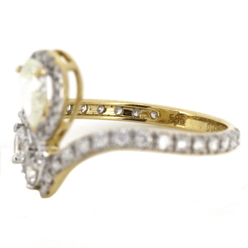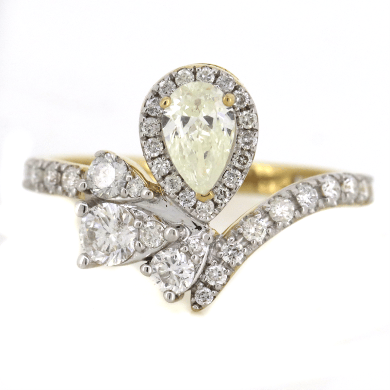 The Centre Features, One Pear Brilliant Cut, Diamond (0.41Ct J-K Colour, Si1 Clarity), Claw Set. Encompassing The Centre And Decorating The Band Are, 47 Round Brilliant Cut, Diamonds (0.698Ct Tdw, G-I Colour, Si-I2 Clarity), Claw Set. Ring Size M 1/2.