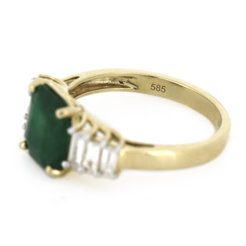 14K YELLOW GOLD, EMERALD AND DIAMOND, DRESS RING.