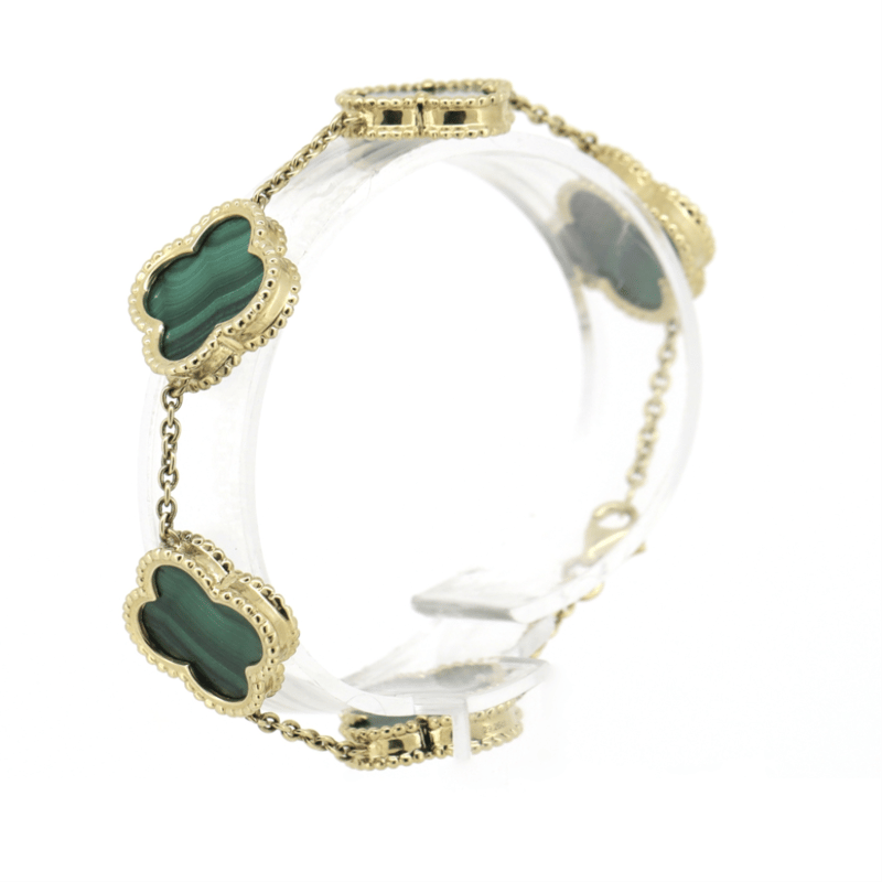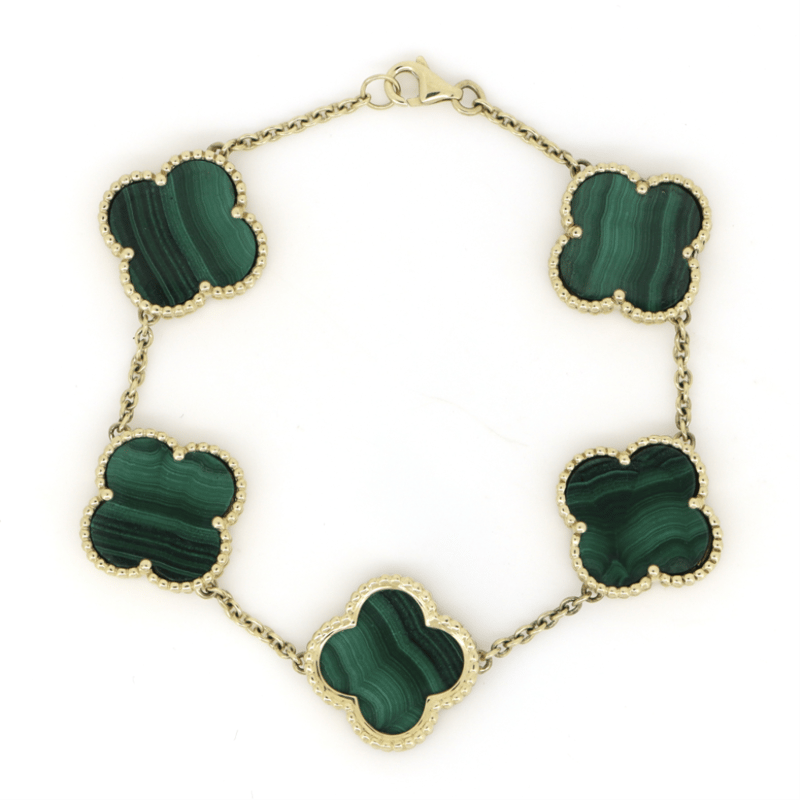 14K YELLOW GOLD, GREEN MALACHITE, BRACELET.
