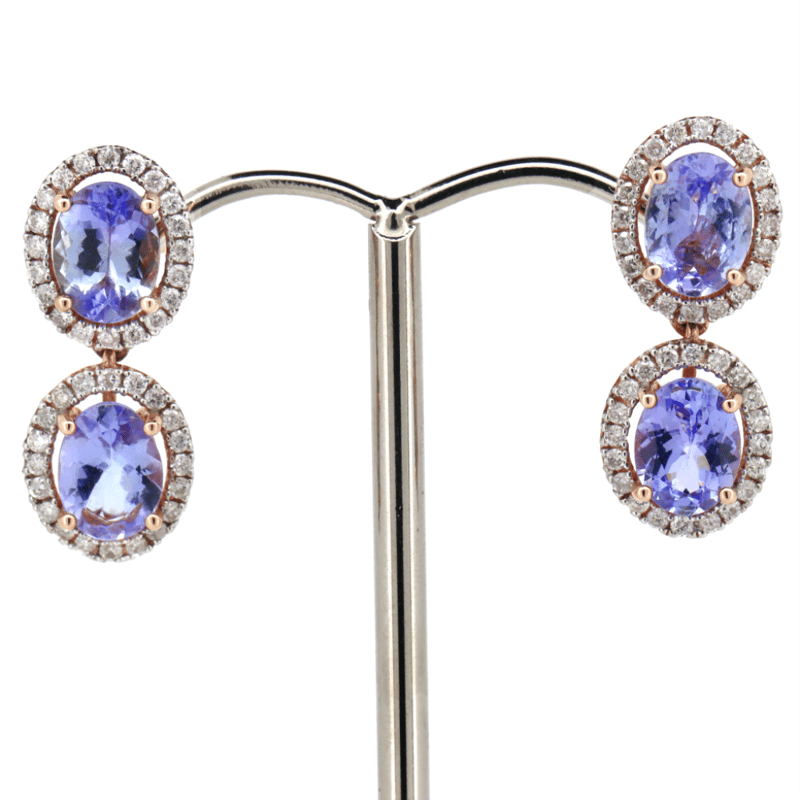 The Design Features, 4 Oval Faceted Cut, Medium Purplish-Blue, Tanzanite (4.86Ct Tsw, Slightly Included-Included), 4 Claw Set. Surrounding The Stones In Individual Halos Are, 80 Round Brilliant Cut, Diamonds (0.75Ct Tdw, I-K Colour, Si2-P2 Clarity), Claw Set. The Earrings Have Post Backs With 14K Rose Gold Butterfly Clasps.