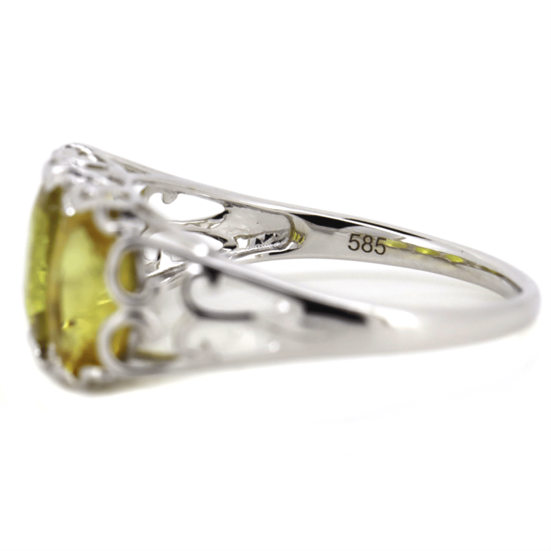 14K WHITE GOLD, YELLOW SAPPHIRE AND DIAMOND, TRILOGY RING.