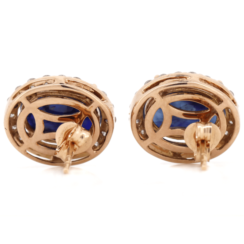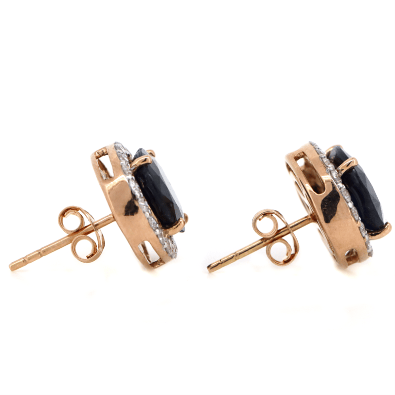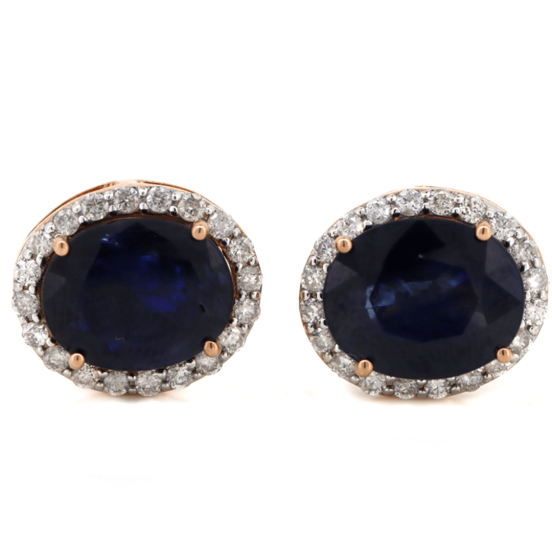 14K ROSE GOLD, SAPPHIRE AND DIAMOND, HALO STUD.