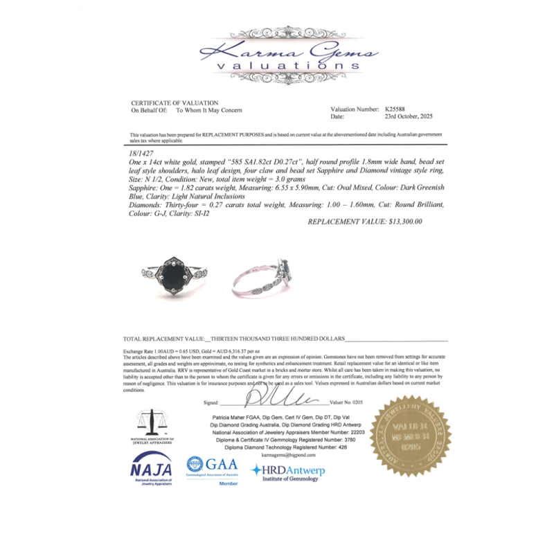 This valuation has been conducted by an independent third-party professional. The valuation amount is an assessment by the issuing valuer and does not reflect the auction value of the item.