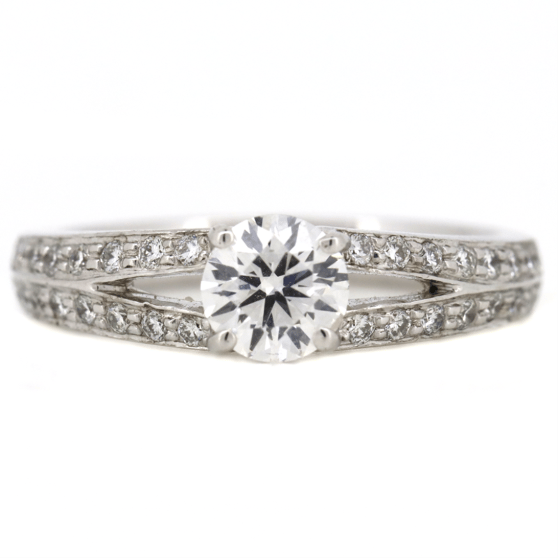 The Centre Features, One Round Brilliant Cut, Diamond (0.70Ct, E-F Colour, P1 Clarity), Claw Set. Decorating The Band Are, 32 Round Brilliant Cut, Diamonds (0.45Ct Tdw, G Colour, Si-P1 Clarity), Claw Set. Ring Size M 1/2.