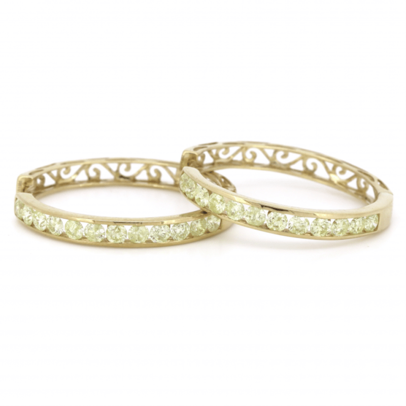 14K YELLOW GOLD, 1.98CT TDW DIAMOND, HOOP EARRINGS.