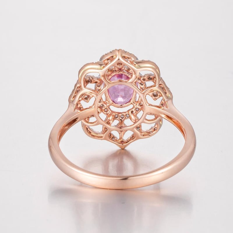 Featuring Centre, One Oval Cut, Vivid Purplish Pink Sapphire (0.99Ct, Slightly Included), Claw Set, With 98 Round Brilliant Cut Diamonds (0.25Ct Tdw, G-H Colour, Vs1-Vs2 Clarity), Bead Set. Ring Size O.